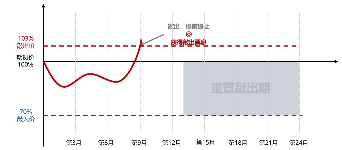 当雪球在敲出重置期内发生敲入后,将敲出价重置的同时,可以重置敲出票息。